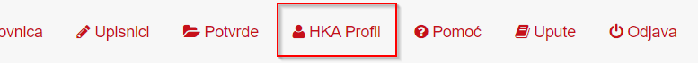 Nakon ispravne prijave automatski ćete biti vraćeni na stranice komore, na podstranicu e-usluge. Ukoliko želite promijeniti svoje osobne podatke odaberite opcije HKA Profil.