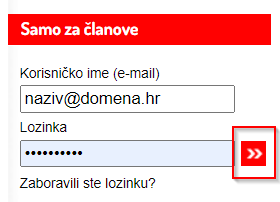 U polje korisničko ime (email) i lozinka upišite samo vama poznate podatke za prijavu i nakon toga kliknite na gumb označen sa dvije strelice.