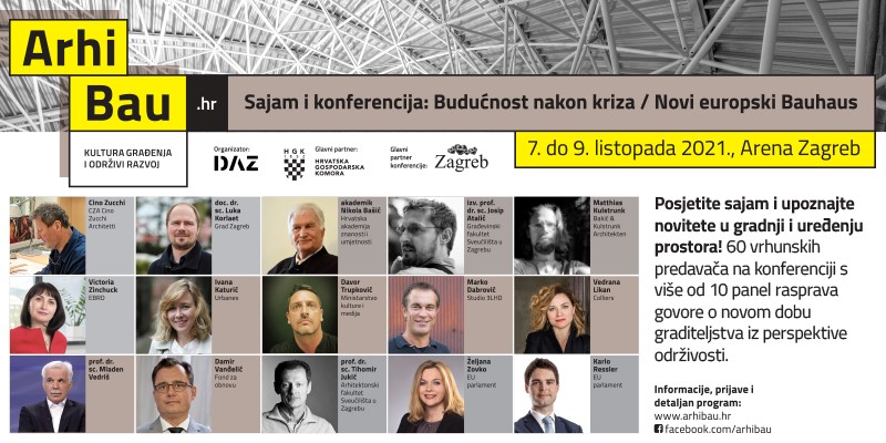 ArhiBau 2021 je najveći ovogodišnji regionalni Sajam s konferencijom o kulturi građenja i održivog razvoja, a održat će se od 7. do 9. listopada 2021. u Areni Zagreb u organizaciji Društva arhitekata Zagreba uz glavnog partnera Hrvatsku gospodarsku komoru.