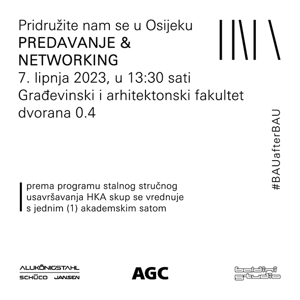 Tvrtka ALUKÖNIGSTAHL 7.lipnja 2023., u 13:30 sati na Građevinskom i arhitektonskom fakultetu (dvorana 0.4) u OSIJEKU započinje turneja po Hrvatskoj sa vrlo zanimljivim predavanjima.